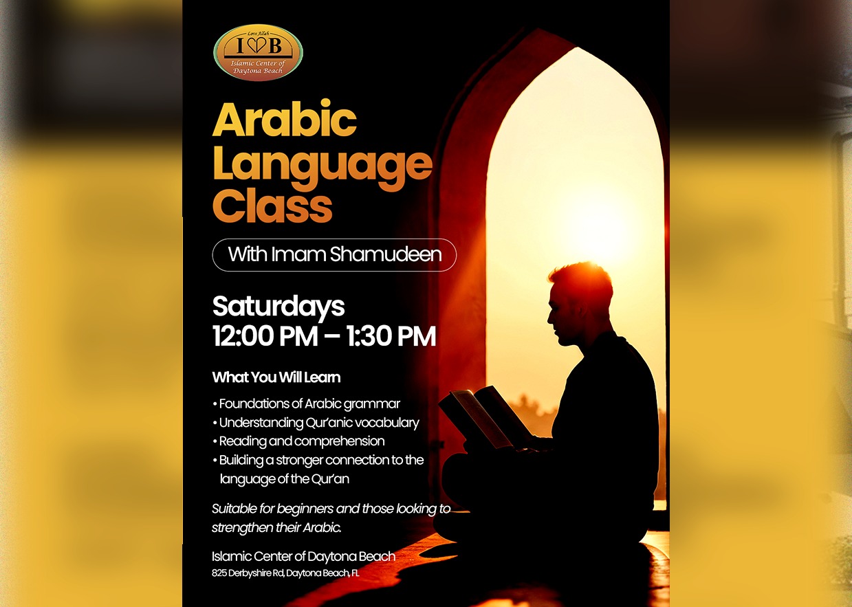 Strengthen your connection with the language of the Qur’an through this structured Arabic class with Imam Shamudeen. You will learn: • Foundations of Arabic grammar • Qur’anic vocabulary • Reading and comprehension skills Perfect for beginners and anyone looking to improve their Arabic. 🗓 Saturdays — 12:00 PM – 1:30 PM